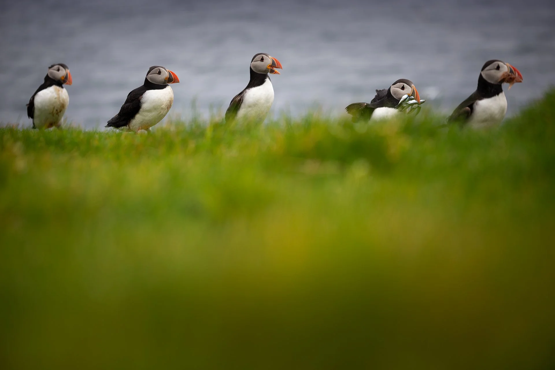 We got pretty nice conditions in the evening (see picture 7 with the small bird below). But at a certain point it started to rain a little bit and we got back to our tent to eat. While eating a rainbow appeared, I ran back to the spot to take pictures but as soon as I arrived the rainbow fainted. Frustated about missing a rainbow at the most epic location in the Faroe Island I crawled into my sleeping bag for some night rest. The next morning my alarm went off and I hear the raindrops falling on my tent…